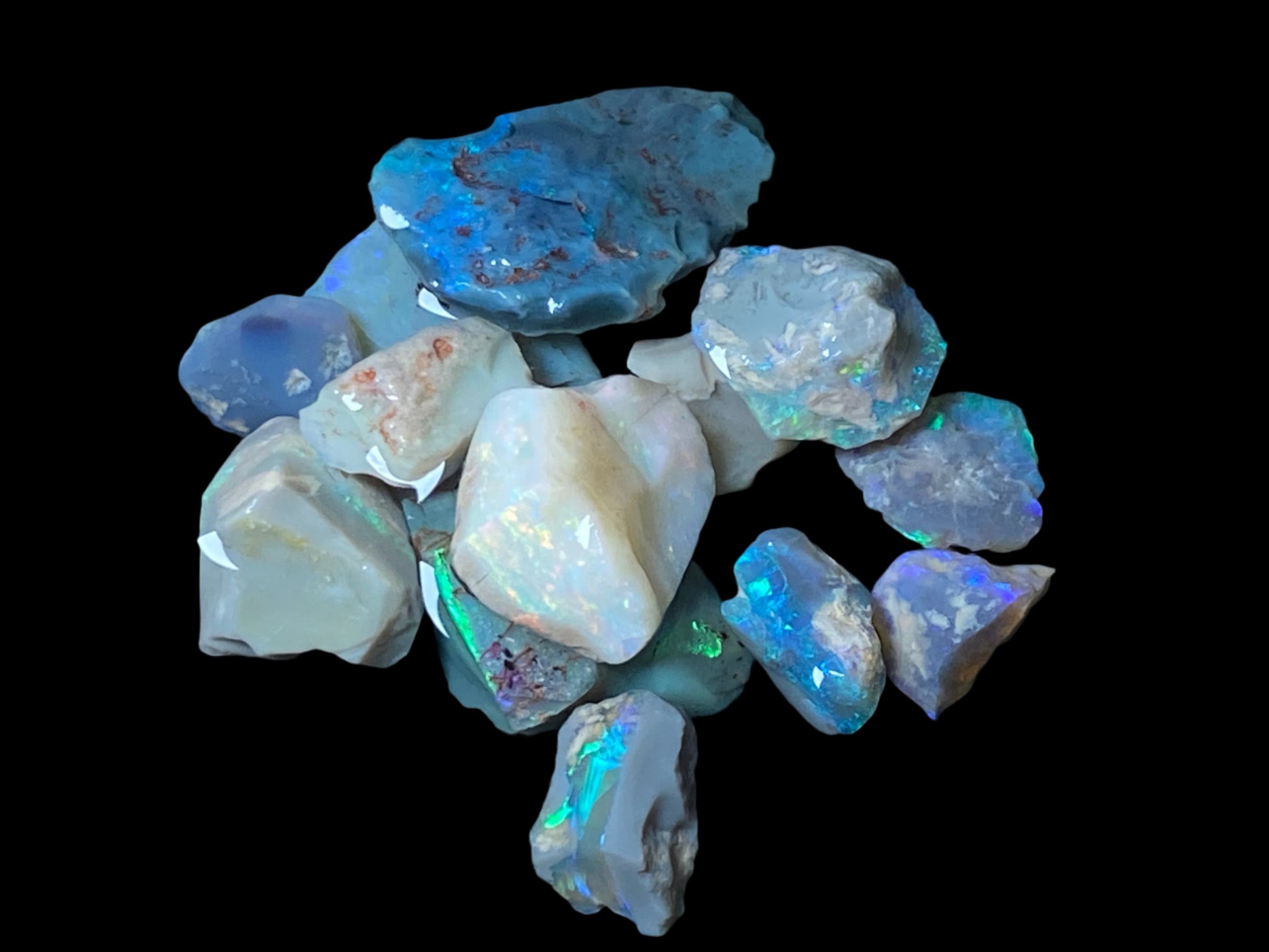 0.2 oz or 29 Cts Natural Australian Opal Inlay Parcel, In The Rough, Grade 1, B5 Vivid Colors. Greens, Blues, Reds.