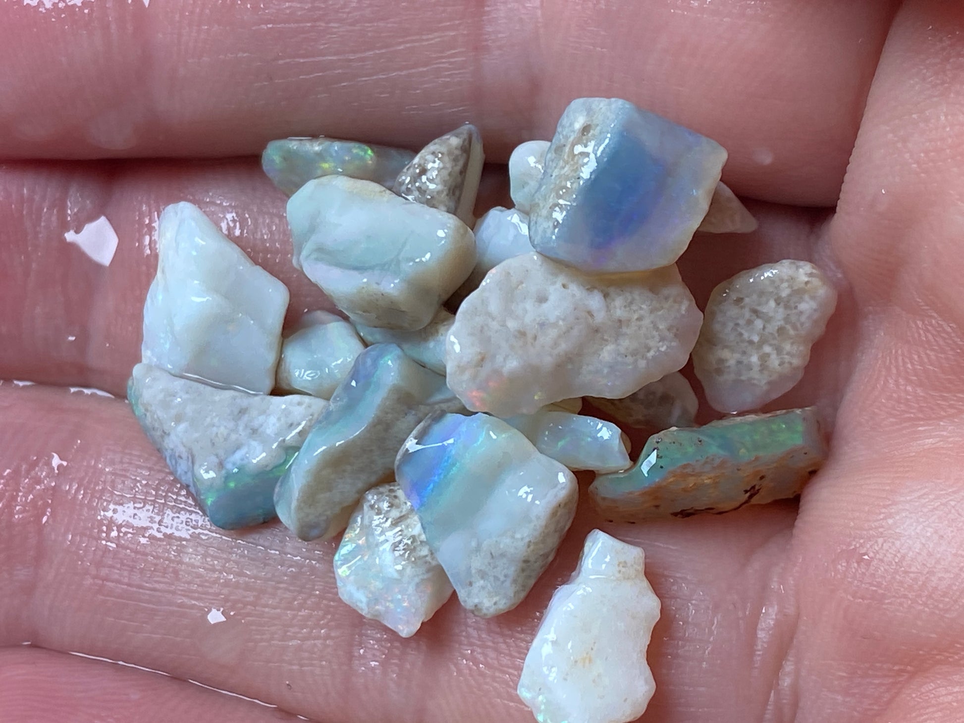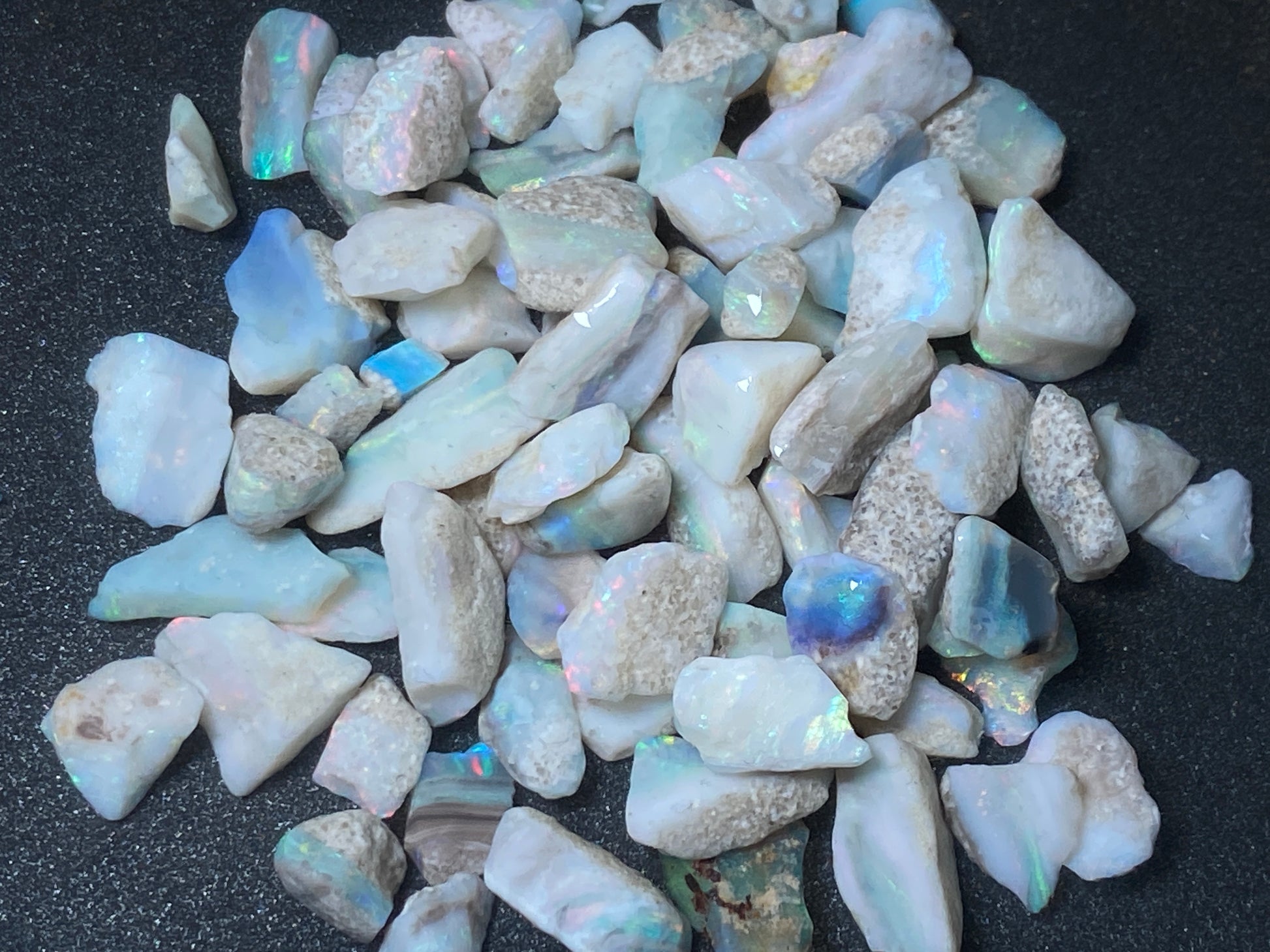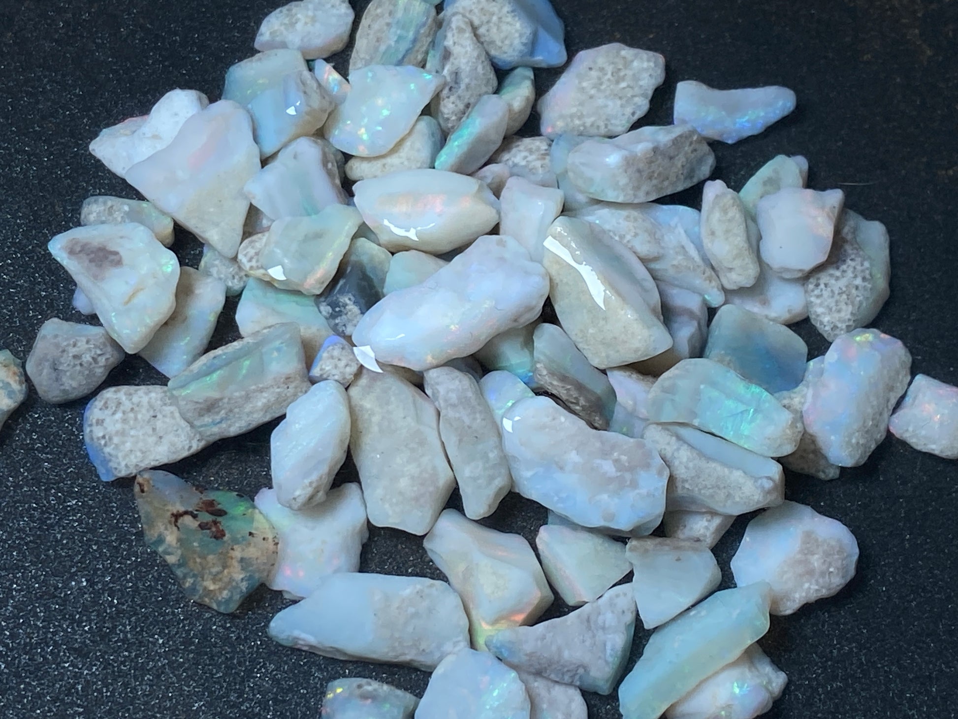 1 oz Australian Opal Parcel, Mintabi Very Small Stones And Chips. In The Rough.