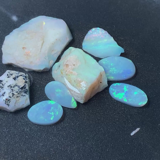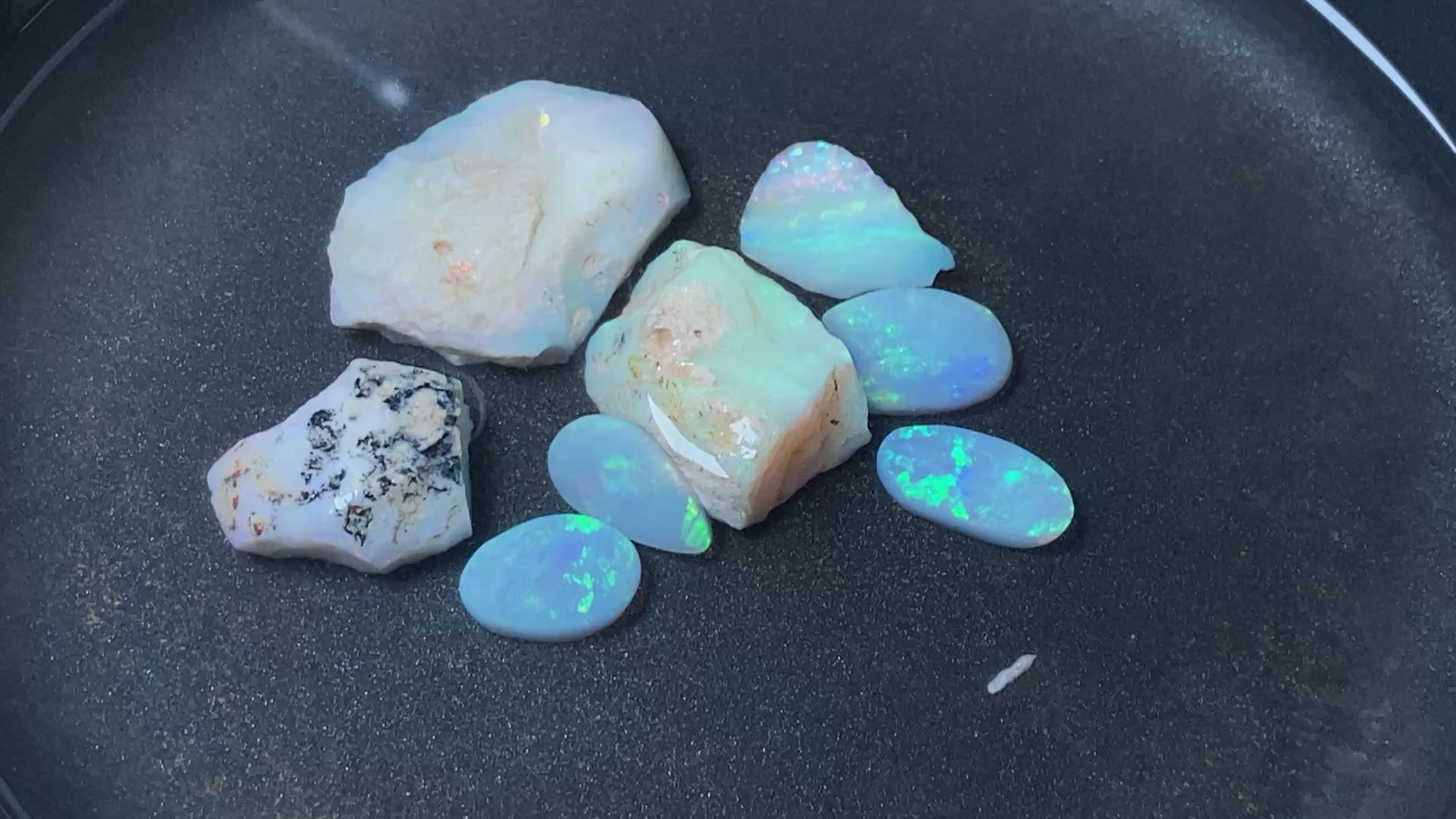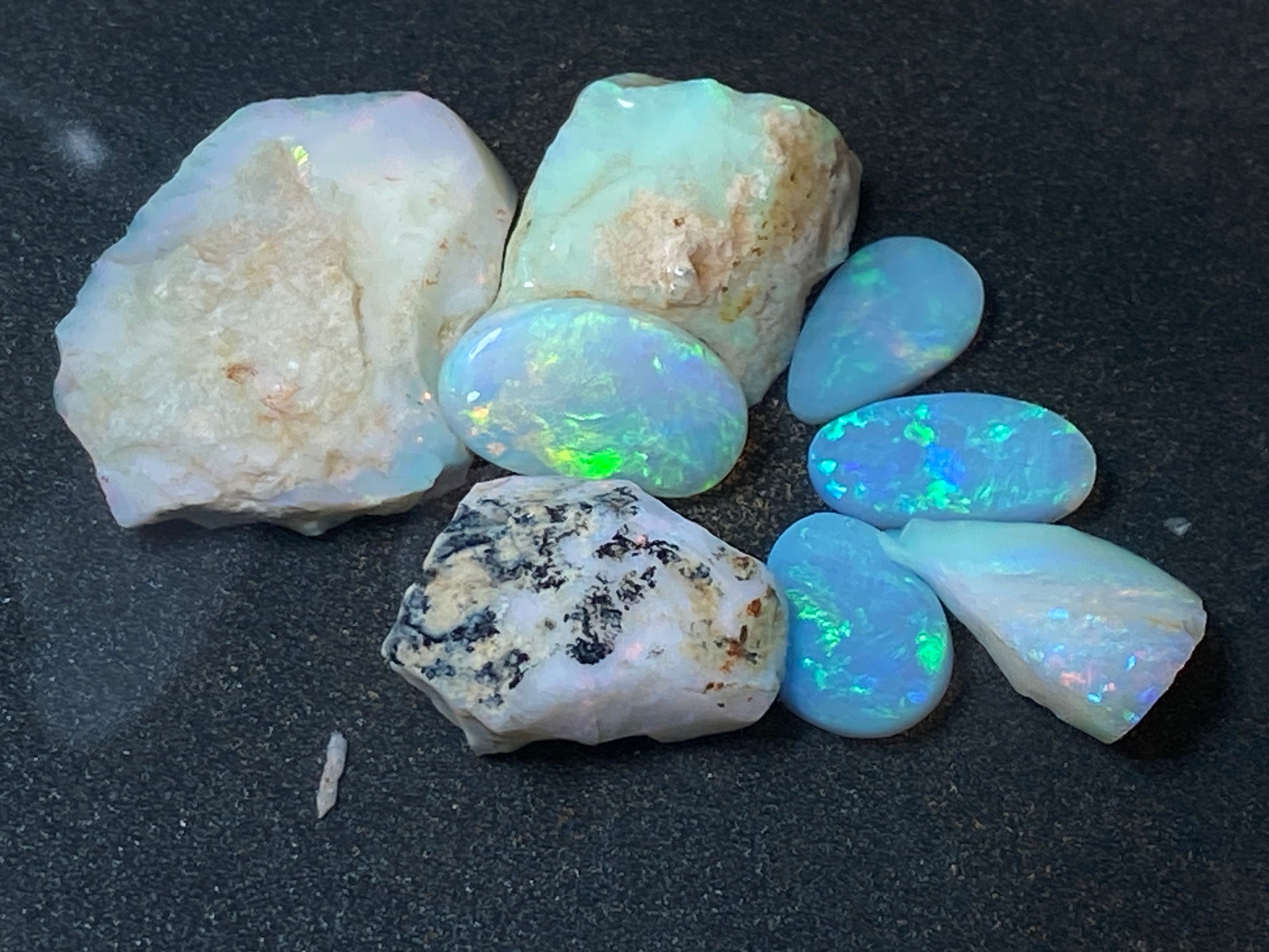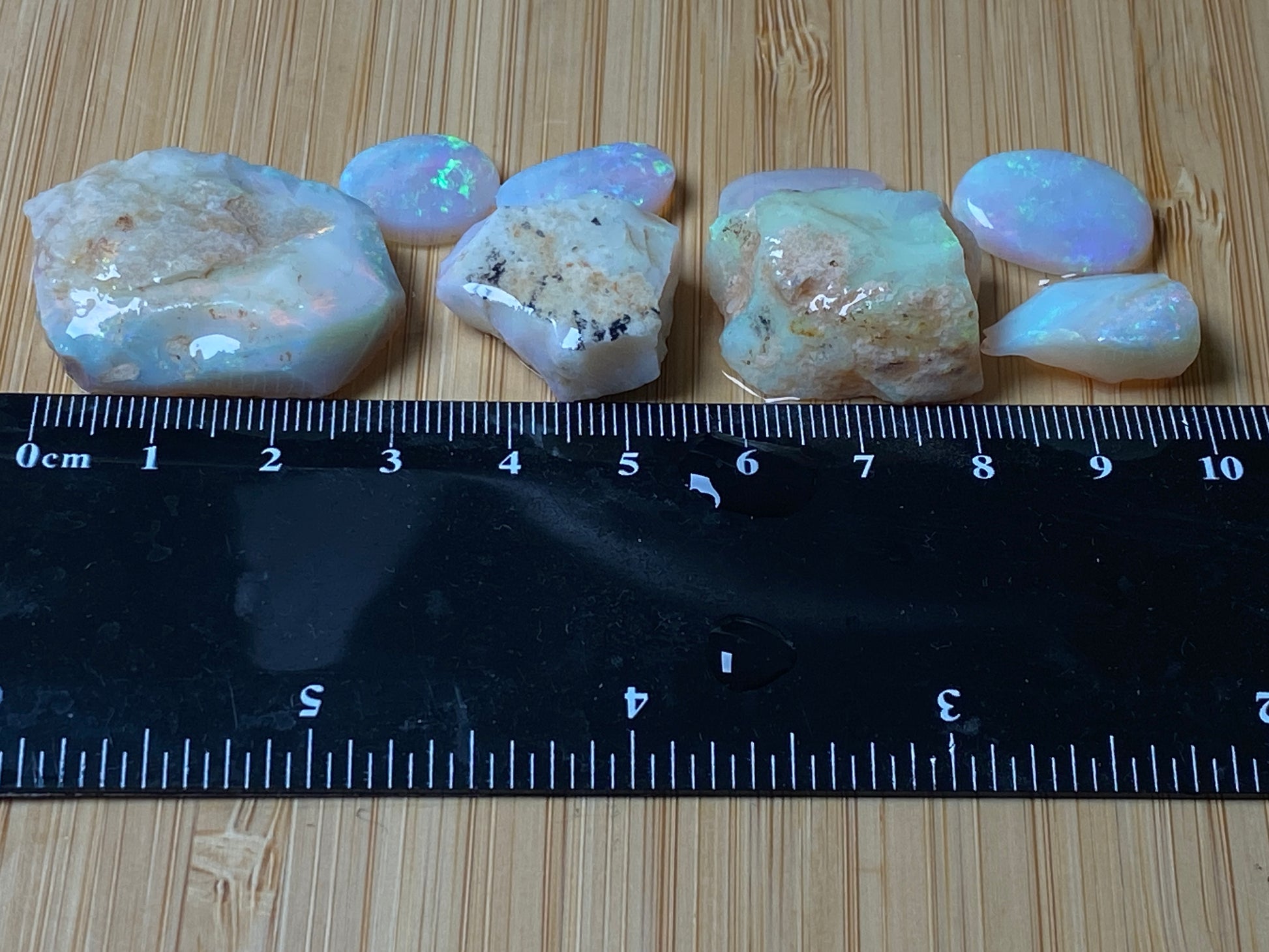 110 Carats Natural Australian Opal Parcel, Rough and Rubs, 8 Stones, 17 Mile Field