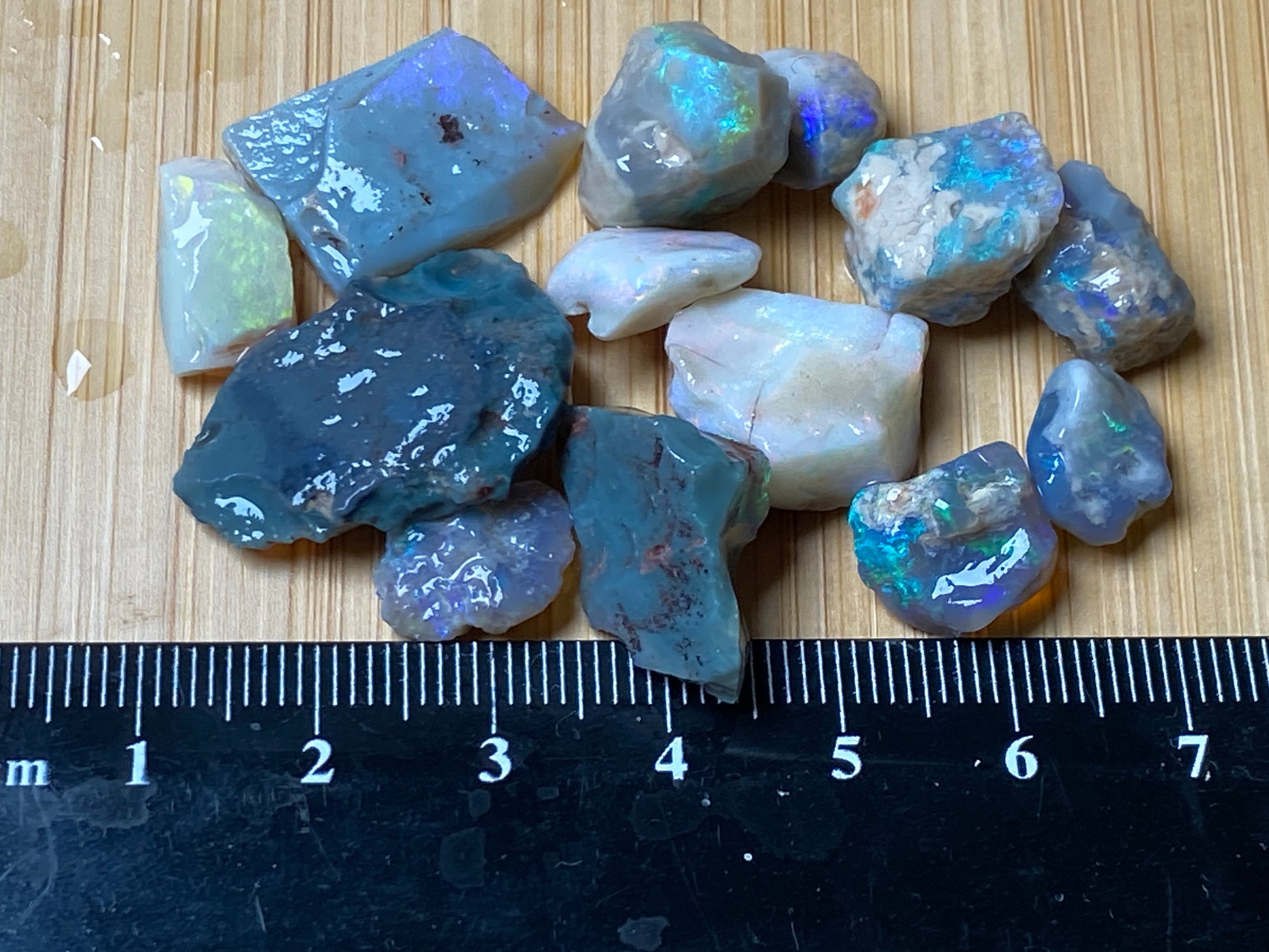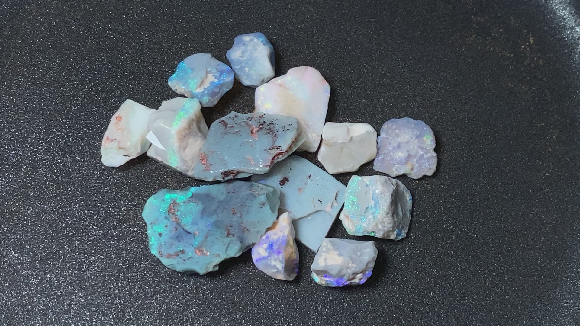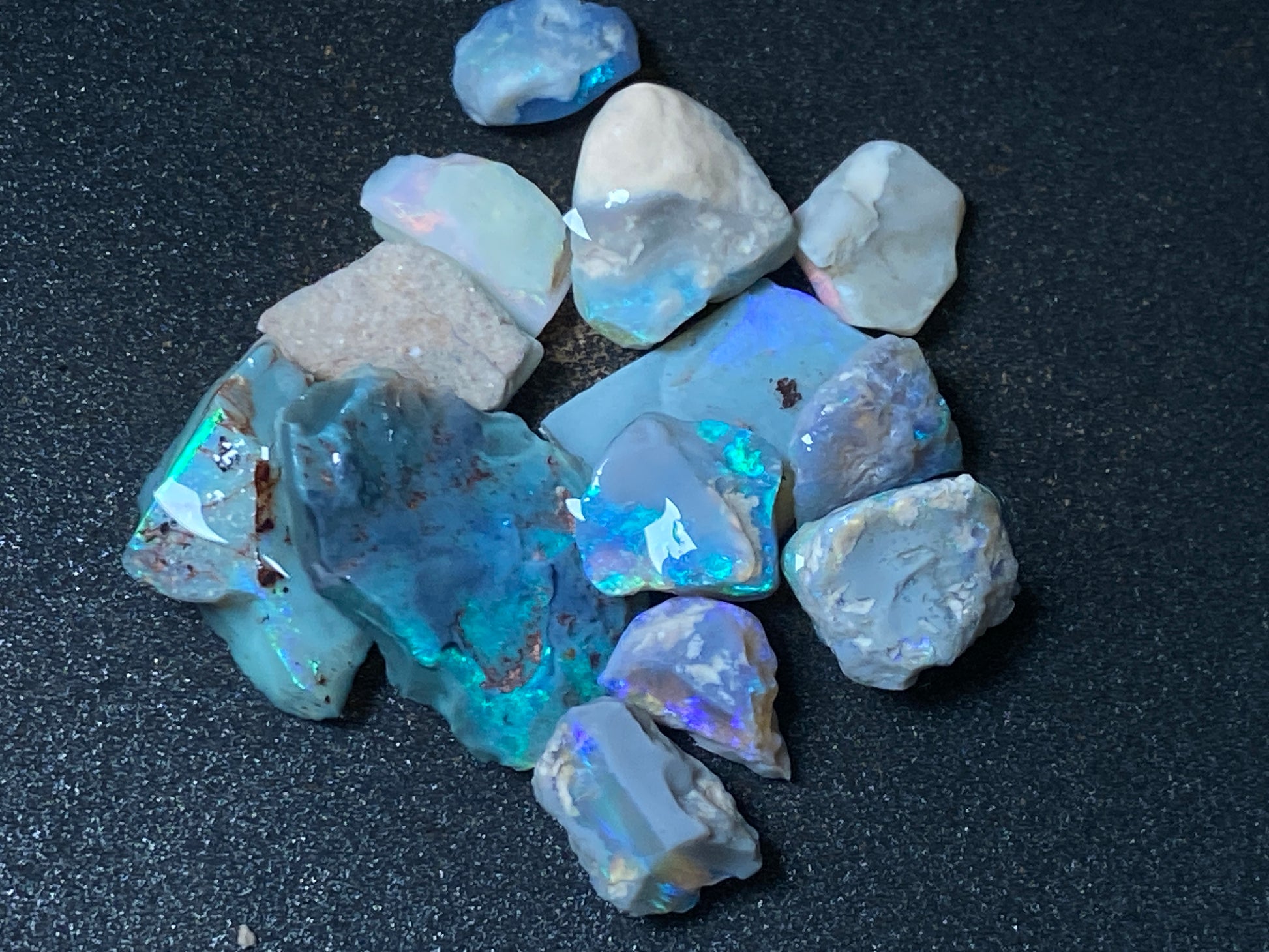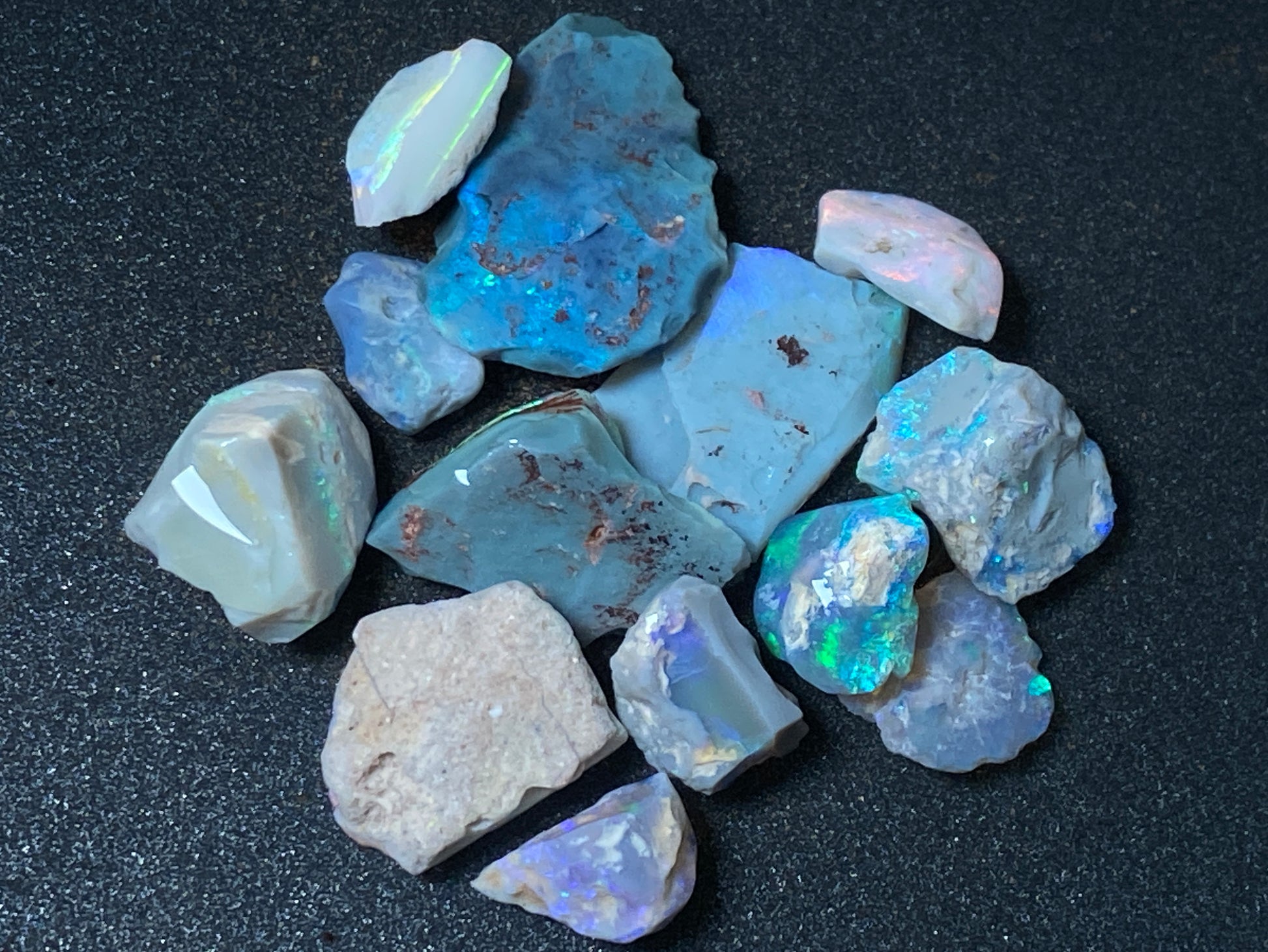 70 Cts, Natural Australian Opal Parcel, 13 Stones Lightning Ridge In The Rough, Crystal and Black