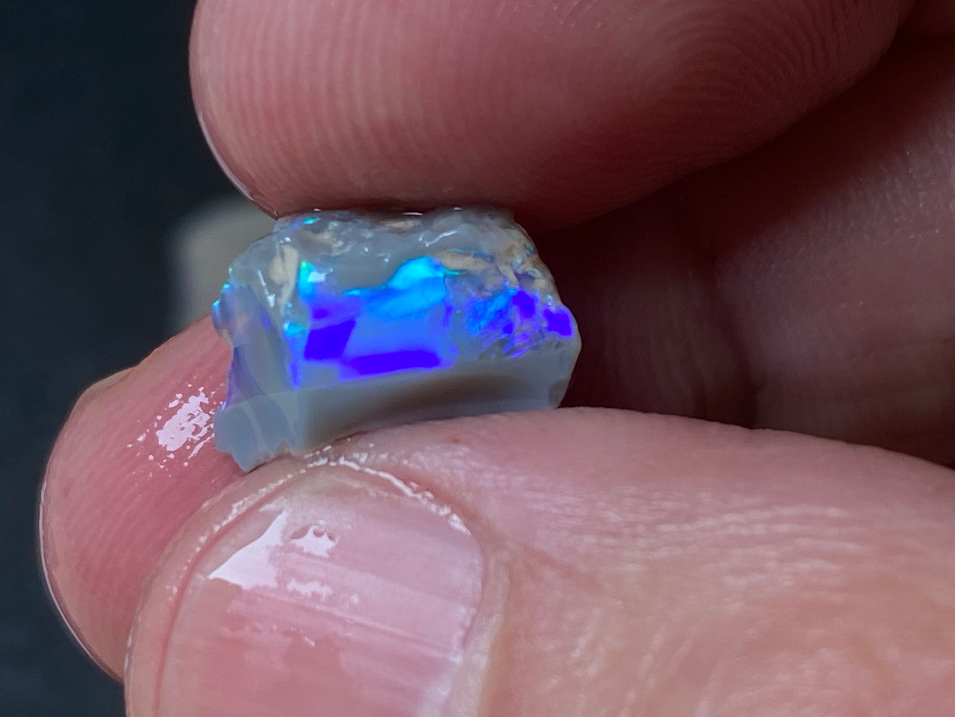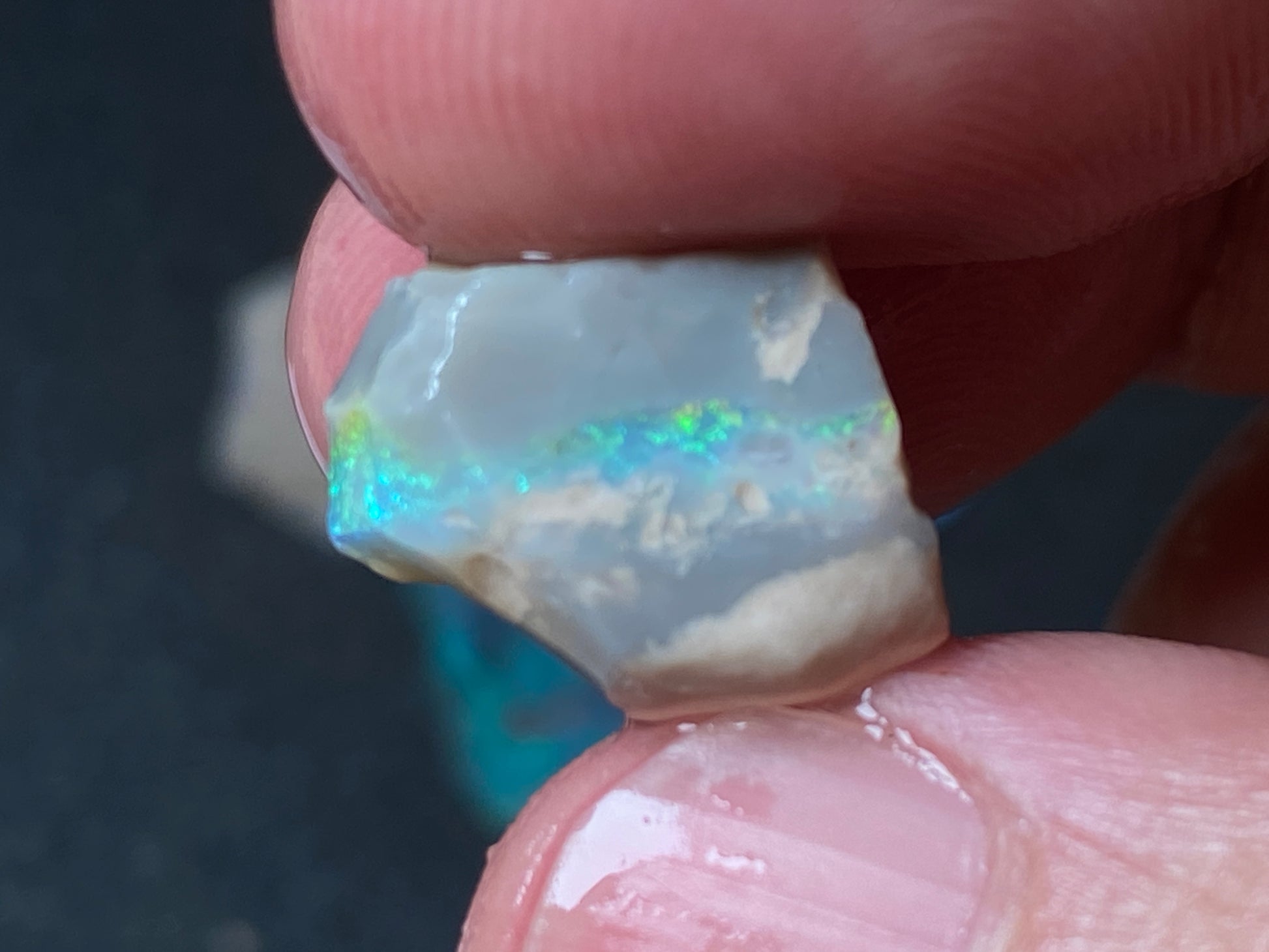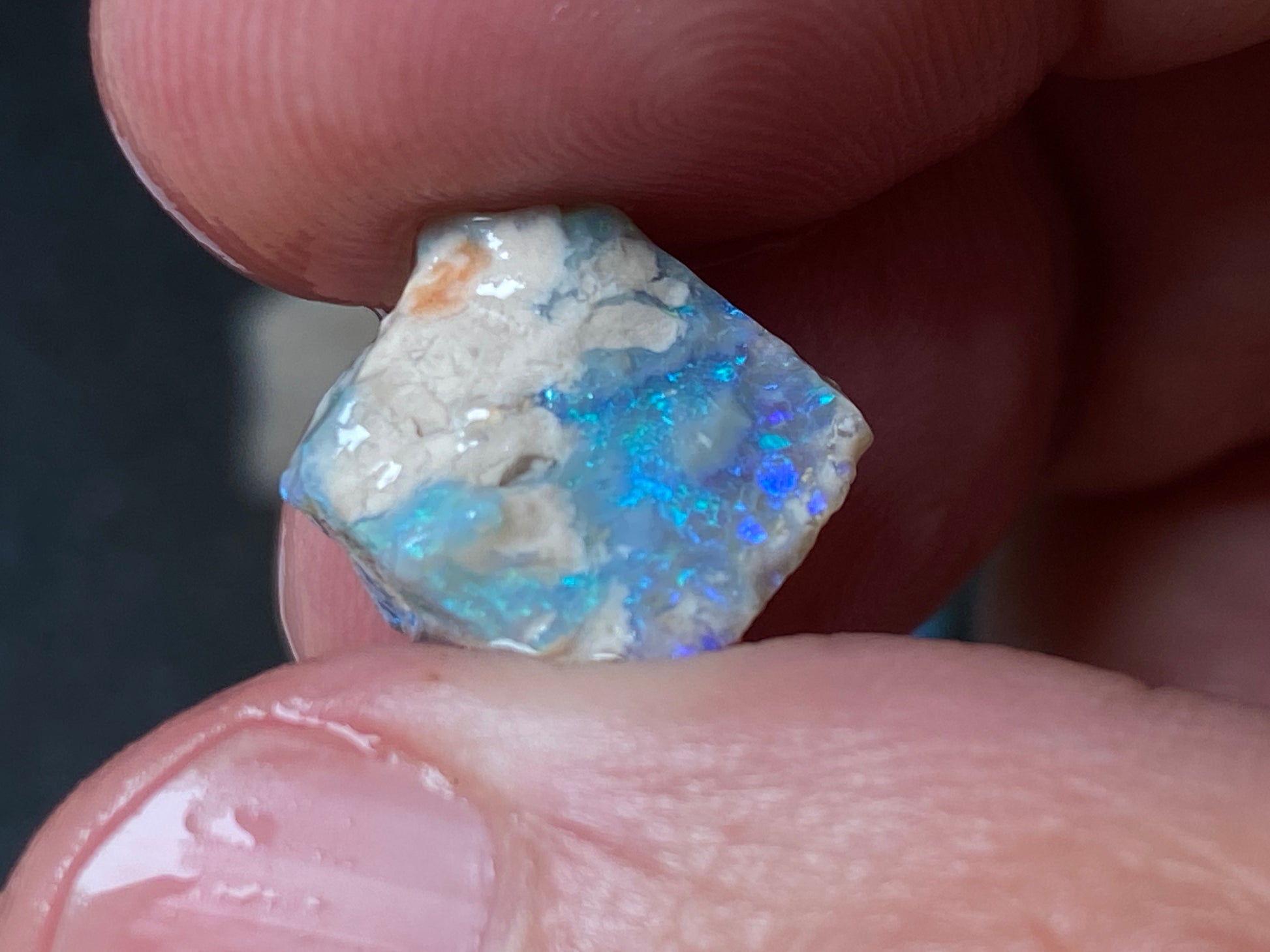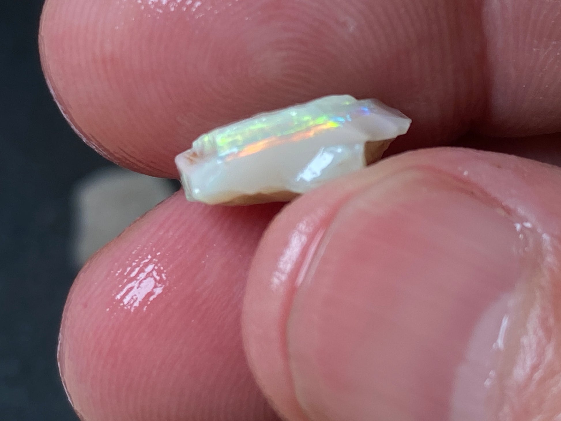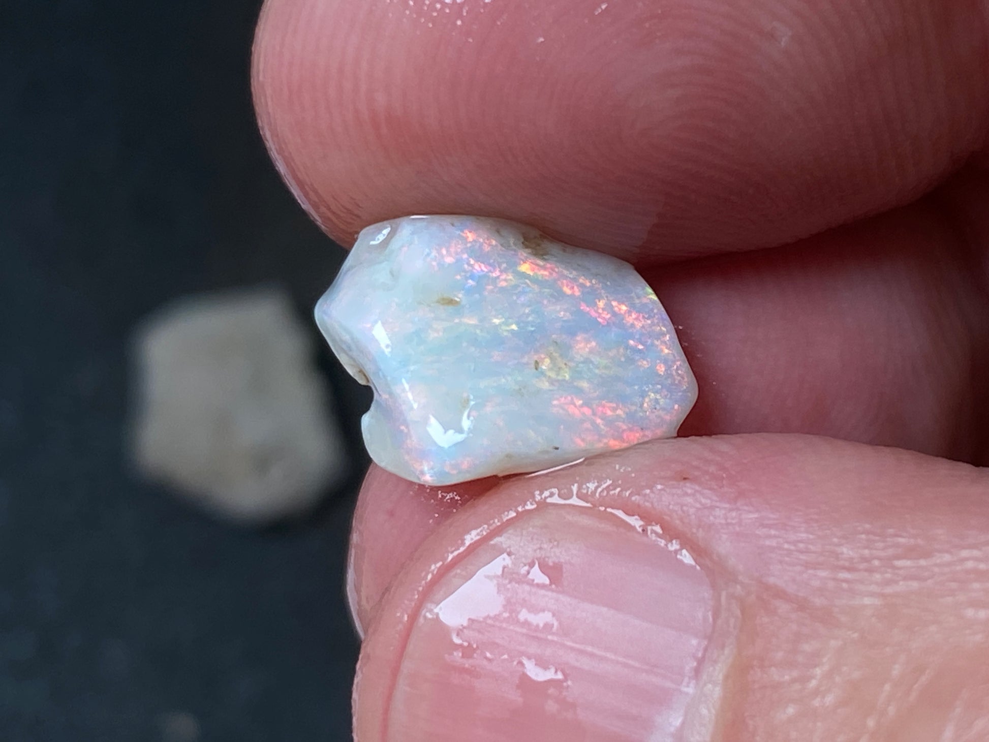 70 Cts, Natural Australian Opal Parcel, 13 Stones Lightning Ridge In The Rough. Crystal and black opal also some light and grey cutters. All colours some very bright. Couple of the stones cut will pay for the parcel. I feel you make good money on it as there is a possible cutter in every piece. Specially the crystal bars are amazing. The big black piece doesn't have clear bar just specs of colour on one side probably the worst piece in this beautiful and awesome parcel for the money.