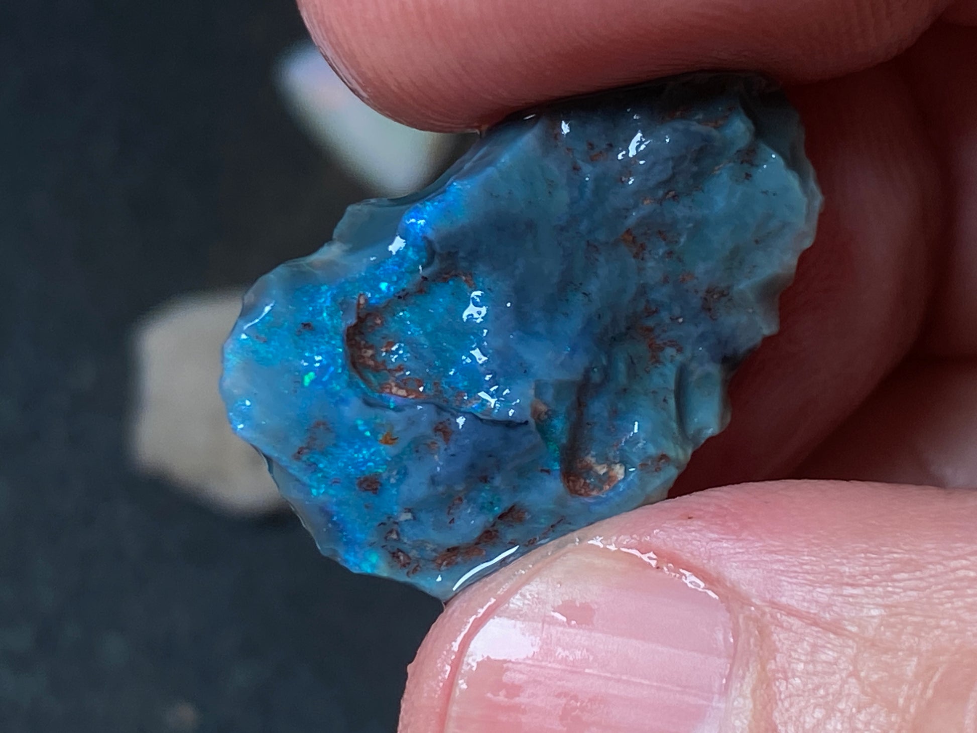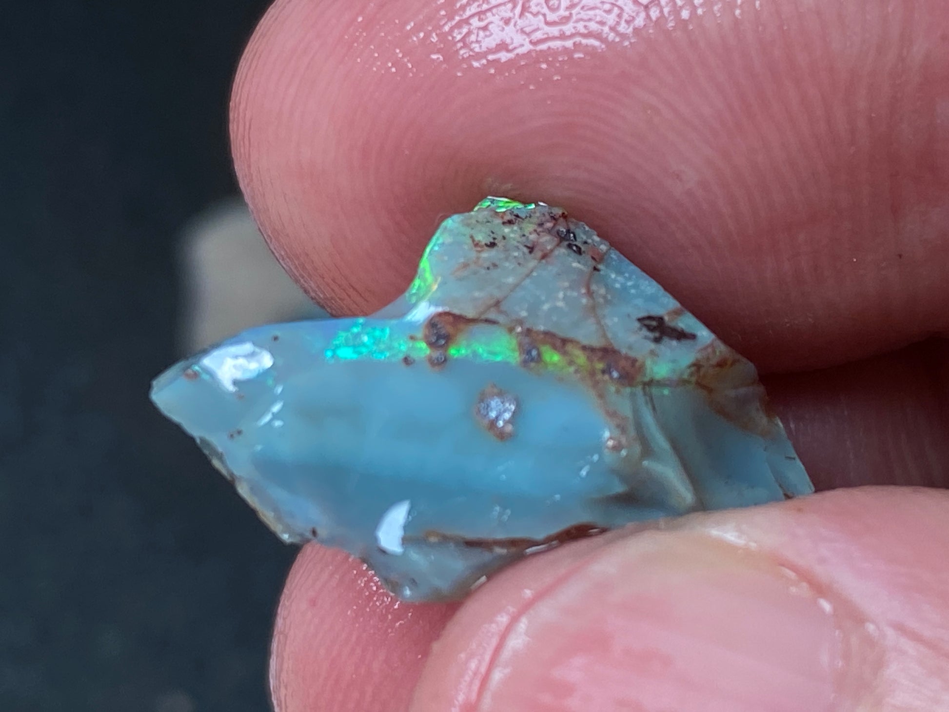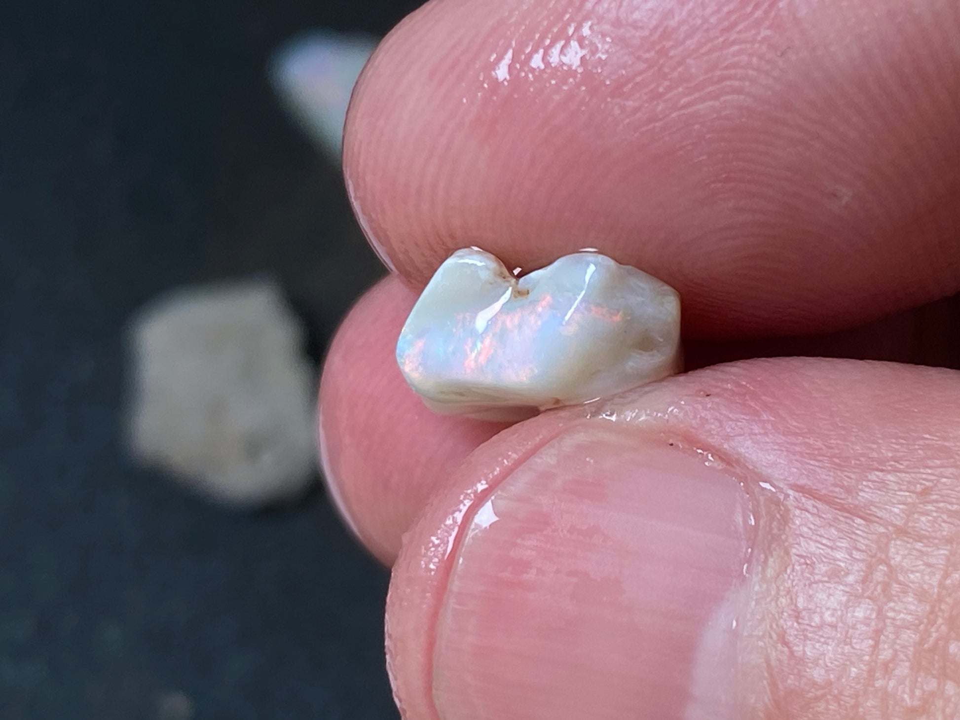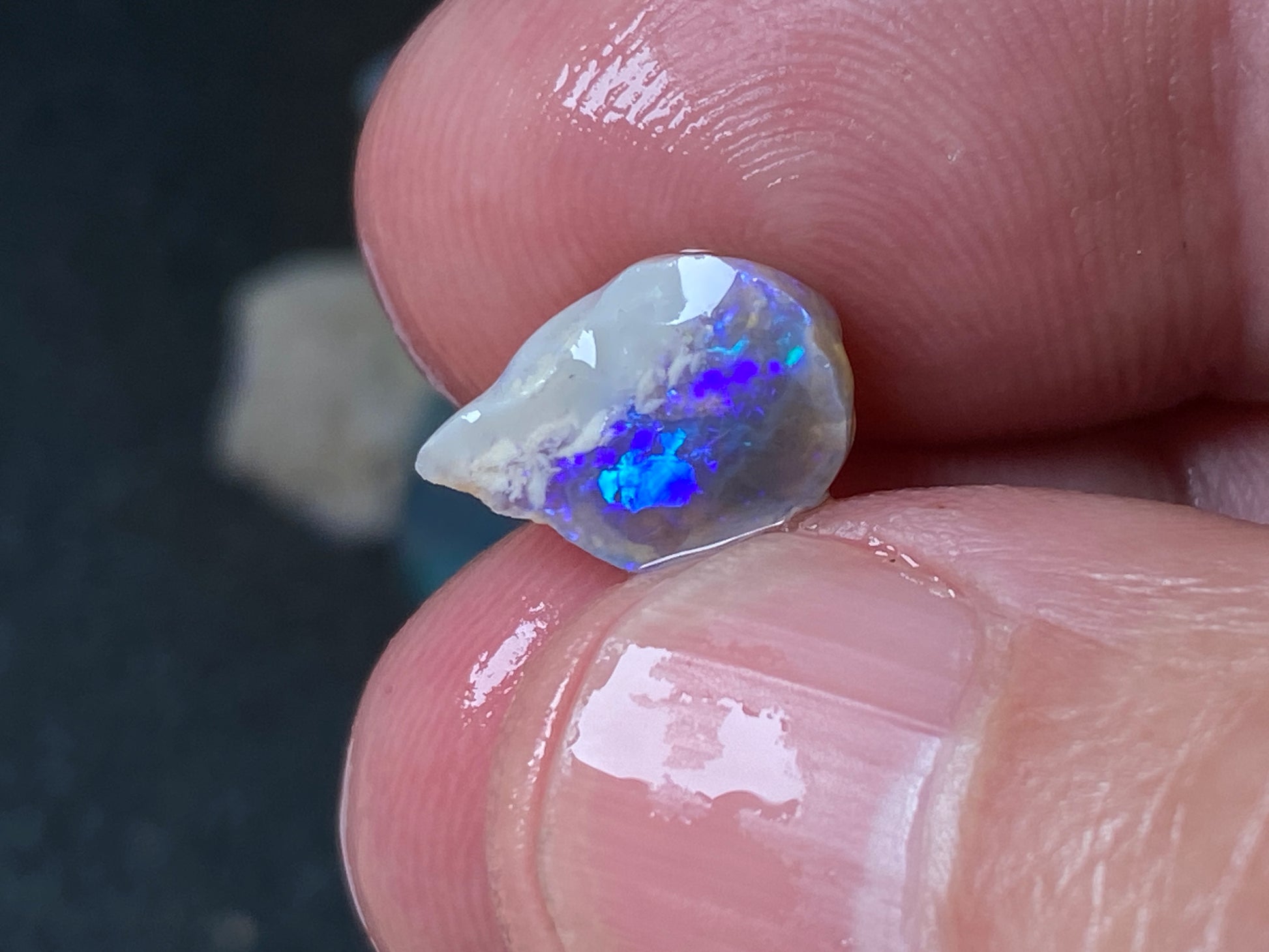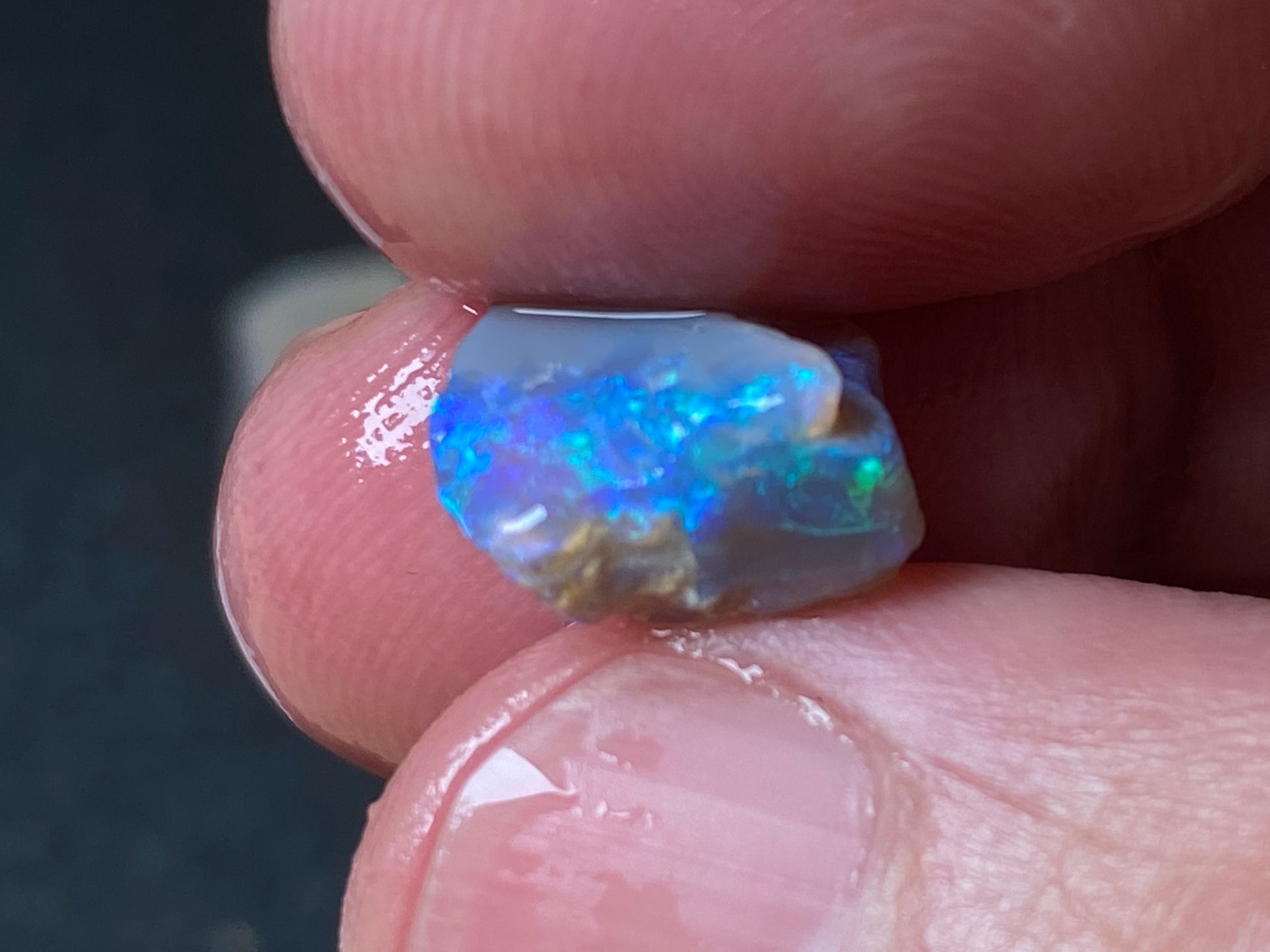 70 Cts, Natural Australian Opal Parcel, 13 Stones Lightning Ridge In The Rough. Crystal and black opal also some light and grey cutters. All colours some very bright. Couple of the stones cut will pay for the parcel. I feel you make good money on it as there is a possible cutter in every piece. Specially the crystal bars are amazing. The big black piece doesn't have clear bar just specs of colour on one side probably the worst piece in this beautiful and awesome parcel for the money.
