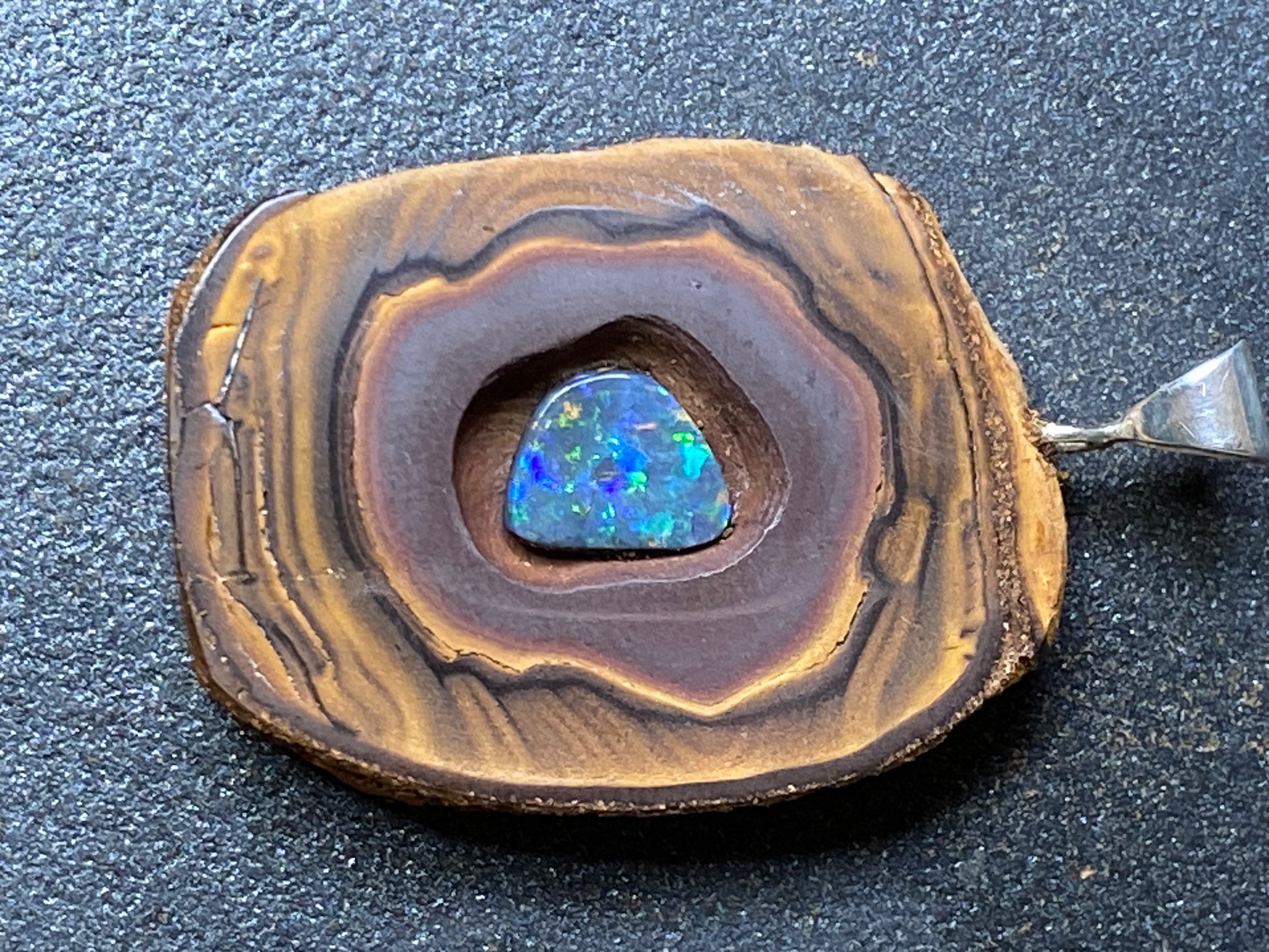 45 克拉天然澳大利亚蛋白石吊坠,Yowah 坚果配闪电岭黑蛋白石。令人惊叹的稀有蛋白石艺术品。坚固的黑蛋白石镶嵌在美丽的 Yowah Nut 中。蛋白石颜色闪烁着绿色和蓝色,并带有一丝橙色。为了打造这件令人惊叹的澳大利亚一件作品,我们付出了很多努力。每个蛋白石爱好者都应该拥有其中一颗。不知道如何定价,所以这是一次保留非常合理的拍卖。如此稀有的作品如何定价?如果你买了它,你将成为世界上唯一拥有它的人。