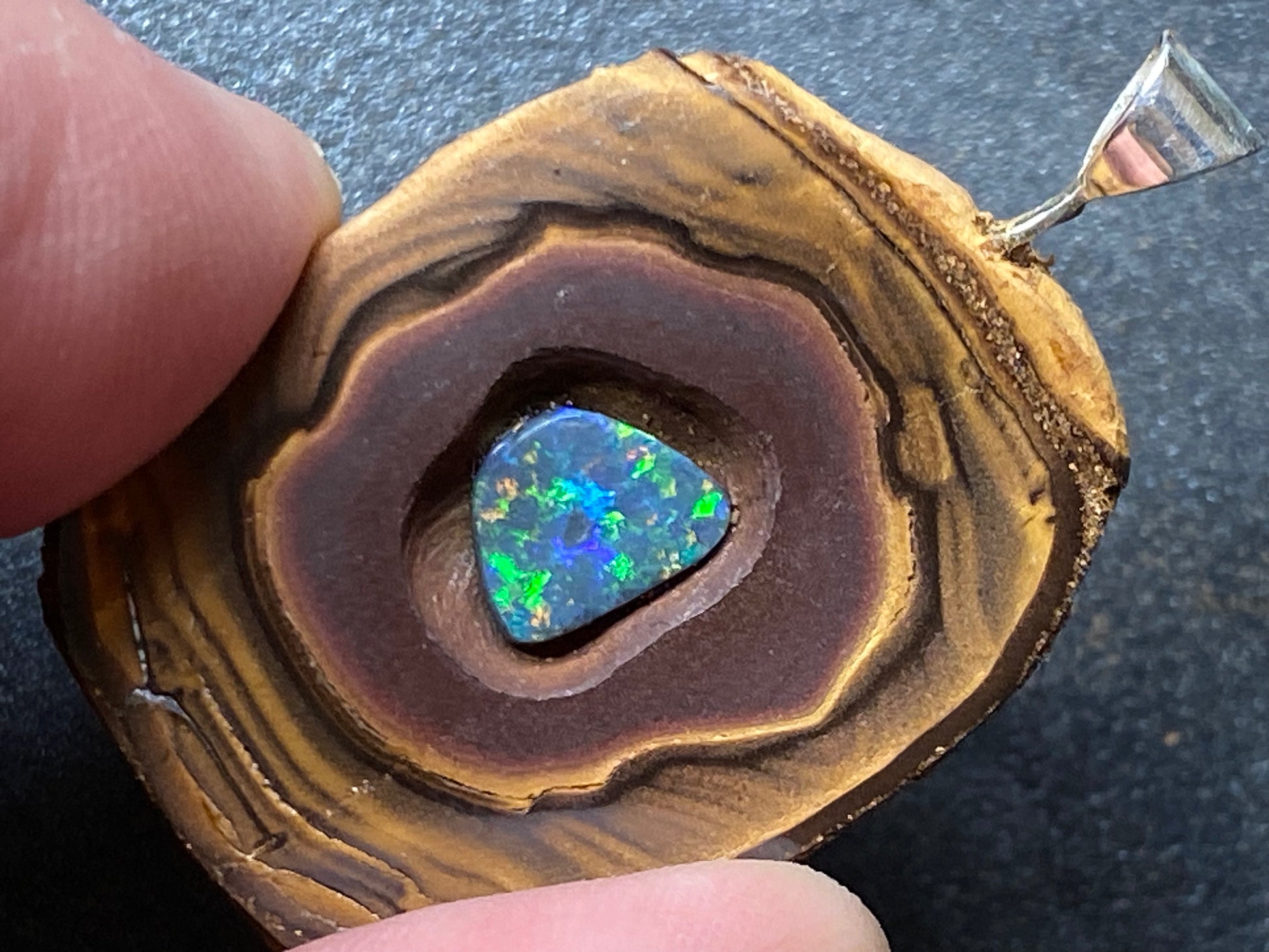 45 克拉天然澳大利亚蛋白石吊坠,Yowah 坚果配抛光闪电山脊黑蛋白石